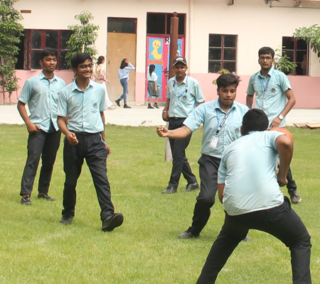 The Omicron has widespread acres of open ground, fully equipped to ground numerous outdoor sports and games. We emphasize regular exercises and physical fitness through our rigorous physical training program and keep our students active and healthy Physical fitness is also a parameter of evaluation and hence along with athletics and sports, a Mass PT is conducted where children are trained to develop coordination, endurance, speed, agility, strength, and fine motor skills. Interpersonal skills and team spirit is the natural fallout of adapting to a group. Every year, the school holds an Annual Athletic Meet, both for Junior and Senior school students where the students display their athletic prowess and compete with a healthy sportsmanship spirit. Weekly classes in yoga and Martial Art for the primary and senior wings teach students self-defense, discipline, achieve fitness, control, and harmony. Meditation and Pranayama are taught to children to improve concentration. Children involved in the sports programme experience some of the most challenging and rewarding moments of their lives. The Physical Education Department consists of a team of dedicated teachers who specialists in their filed and are responsible for the implementation of the day-to-day sports programme. Intra and inter- house competitions help spot and nurture talent..